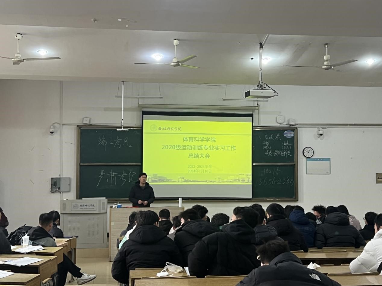 1月10日上午,万象城allwincity官网2020级运动训练专业实习总结大会在博约楼101教室召开。运动训练系党支部书记陈秀、运动训练系副主任廖顺建、毕业班辅导员张康康及2020级运动训练专业全体学生参加总结大会。