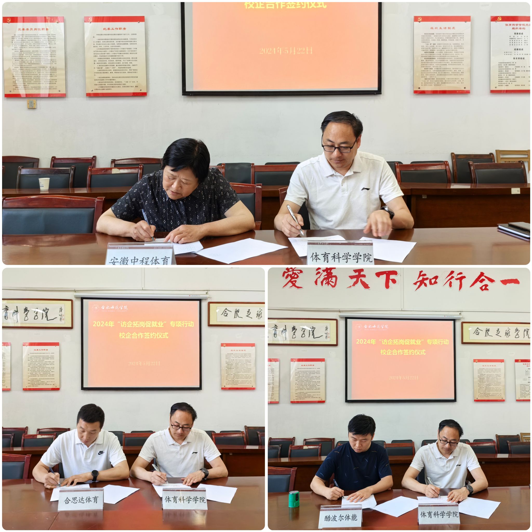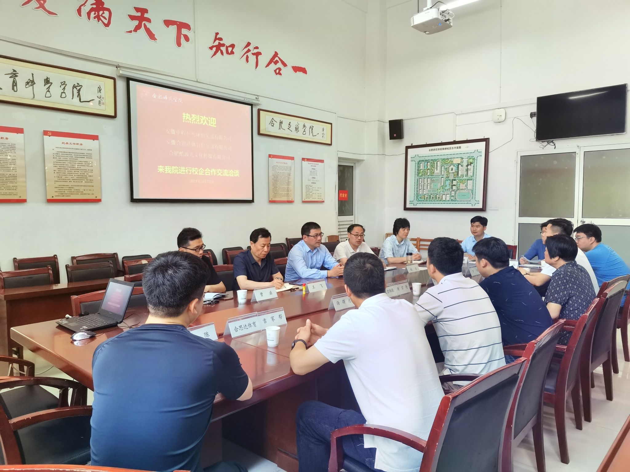 为落实教育部、省教育厅关于“访企拓岗”促就业专项行动工作部署,深化校企合作,加强人才供需对接,进一步开拓毕业生就业岗位,5月22日上午,安徽中程乒乓球俱乐部有限公司、安徽合思达体育俱乐部有限公司、合肥酷波儿文化传媒有限公司等3家企业受邀来访学院,院党委委员、副院长周端明接见来访企业负责人并座谈。万象城allwincity官网党政班子成员、相关专业教师和辅导员代表陪同。