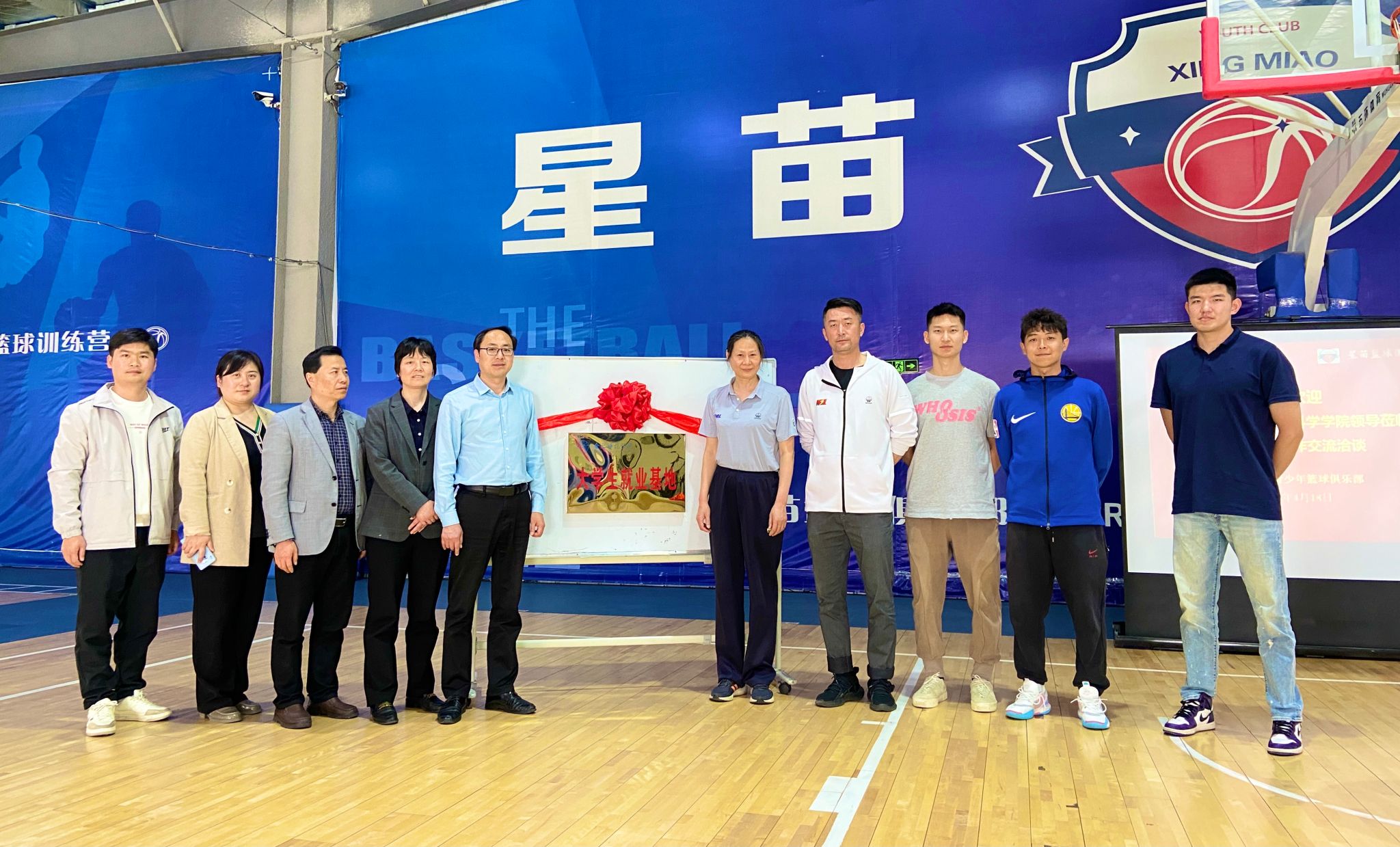 为落实教育部、省教育厅关于“访企拓岗”促就业专项行动工作部署,深化校企合作,多措并举为毕业生创造更多的实习就业机会,4月18日下午,万象城allwincity官网党委书记赵波、副书记王飞、副院长席莉、运动训练系副主任陈秀、毕业班辅导员张康康等一行先后到安徽星苗青少年篮球俱乐部、安徽踢嗨体育文化发展有限公司开展“访企拓岗”促就业专项行动暨校企合作交流洽谈会,并现场举行了共建大学生就业实习基地的签约和授牌仪式。