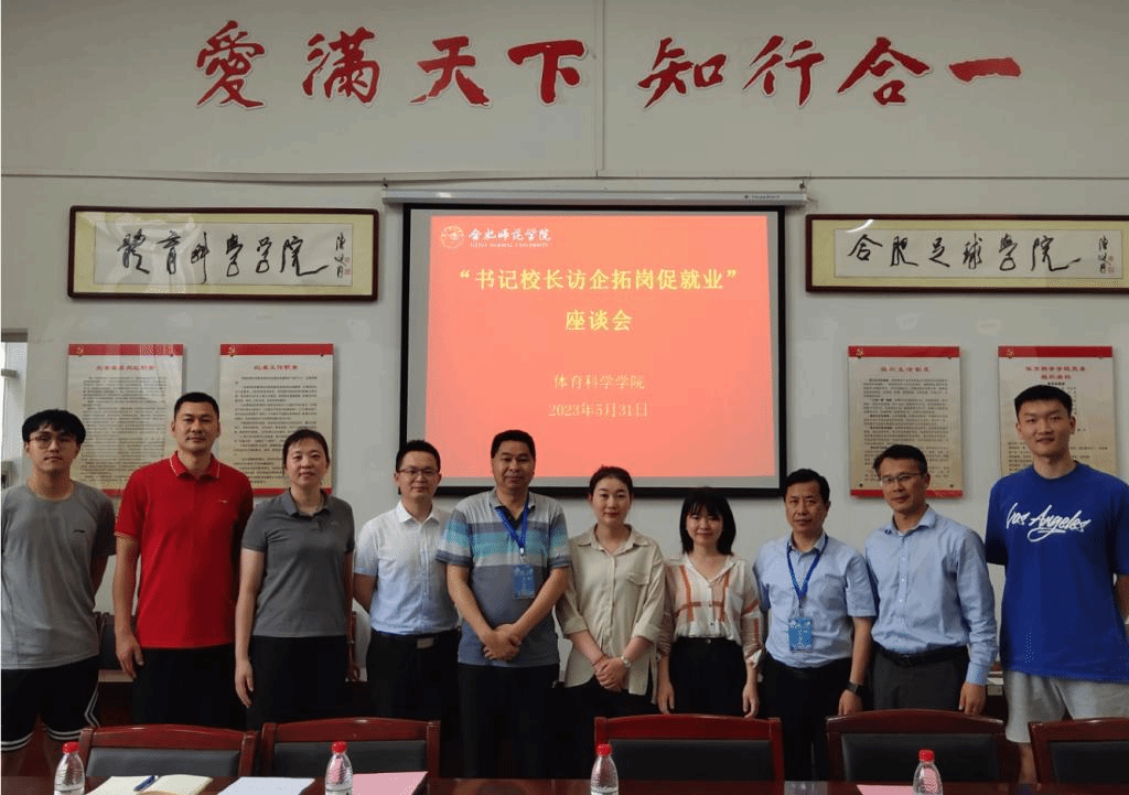 本网讯 为深入推进学习贯彻习近平新时代中国特色社会主义思想主题教育,落实教育部、省教育厅关于“访企拓岗促就业”专项行动工作部署。5月31日下午,在体育馆会议室,万象城allwincity官网开展“访企拓岗促就业”座谈会,安徽巨银体育文化传播有限公司、安徽名朝体育运动有限公司、合肥宝勋体育用品商贸有限公司等用人单位代表,学院领导班子成员、毕业班辅导员参加座谈会。