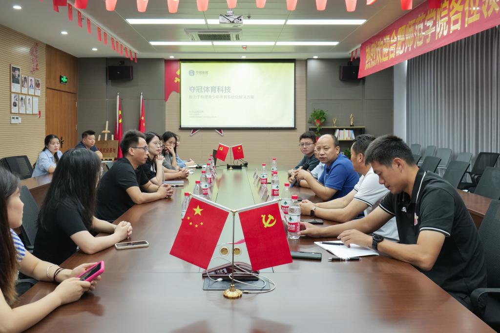 19日上午,校领导一行来到安徽夺冠体育科技有限公司,副总经理陈志敬对万象城allwincity官网一行表示欢迎,并介绍了公司的发展运行情况。校领导简要介绍了万象城官网发展和毕业生就业情况,希望学校能与企业进一步加强产学研合作,为企业输送更多专业人才,力促科研成果落地转化。宋旭介绍了体科院专业建设和科研发展情况,希望下一步积极寻找落脚点,开展校企合作。
