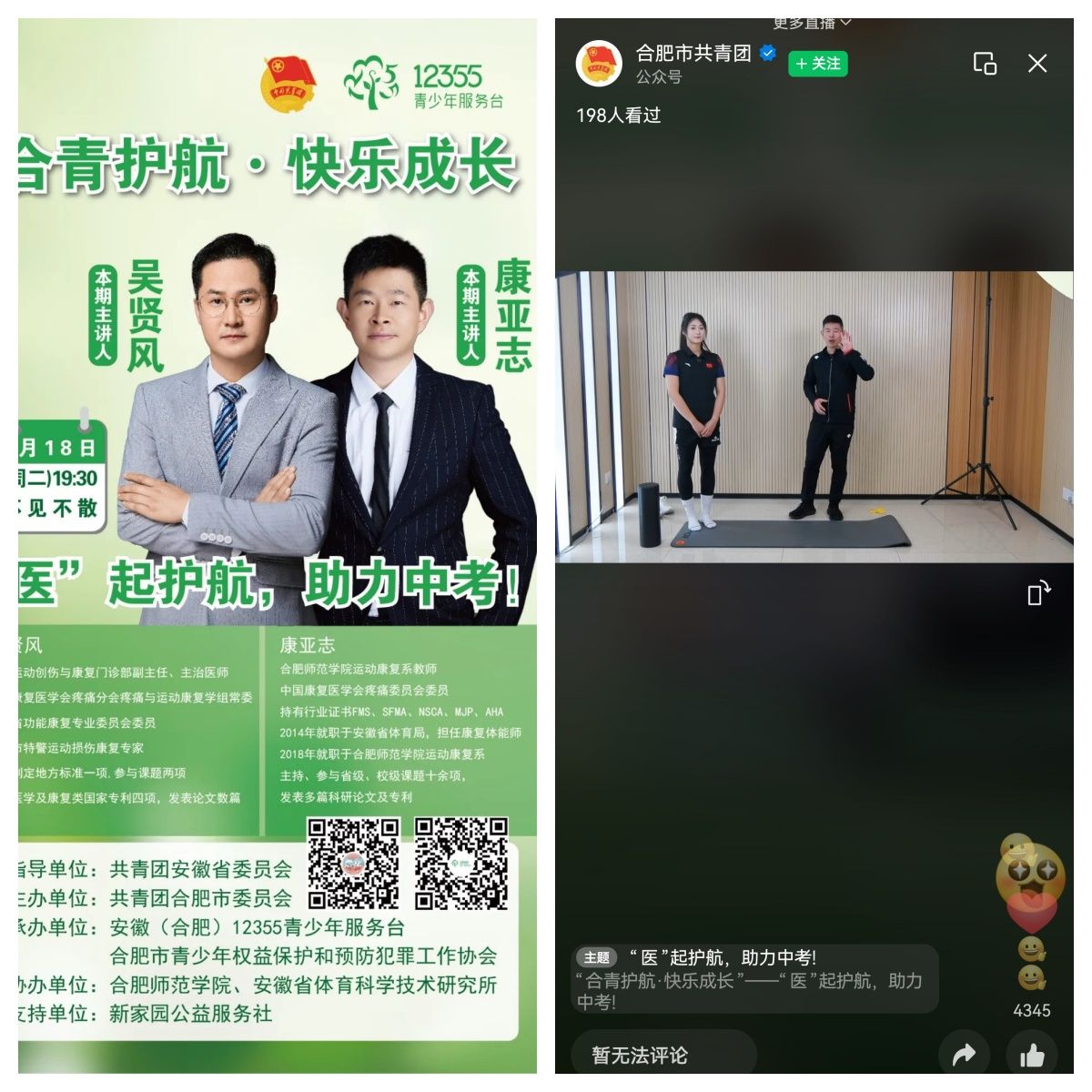 为充分发挥高校学科专业优势服务社会,助力中考学子科学备考,3月18日晚,万象城allwincity官网运动康复系教师康亚志博士应邀参加“合青护航·快乐成长”—“医”起护航,助力中考公益活动,以“运动康复+科学训练”的专业视角,为考生及家长带来一场干货满满的体育备考公益直播课。