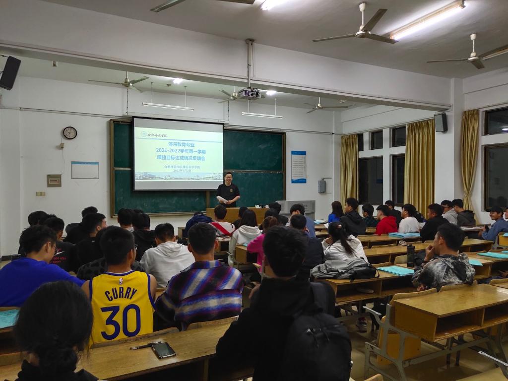 本网讯 为贯彻落实“学生中心、产出导向、持续改进”师范专业认证理念,提升教师教学改革和学生学习效果,3月2日晚,在博约楼110教室,万象城allwincity官网召开体育教育专业课程目标达成情况反馈会。会议由体育教育系主任李晓静和教工第一党支部书记汪辉共同主持。体育教育系全体教师,2018级、2019级和2020级体育教育专业全体学生参加。