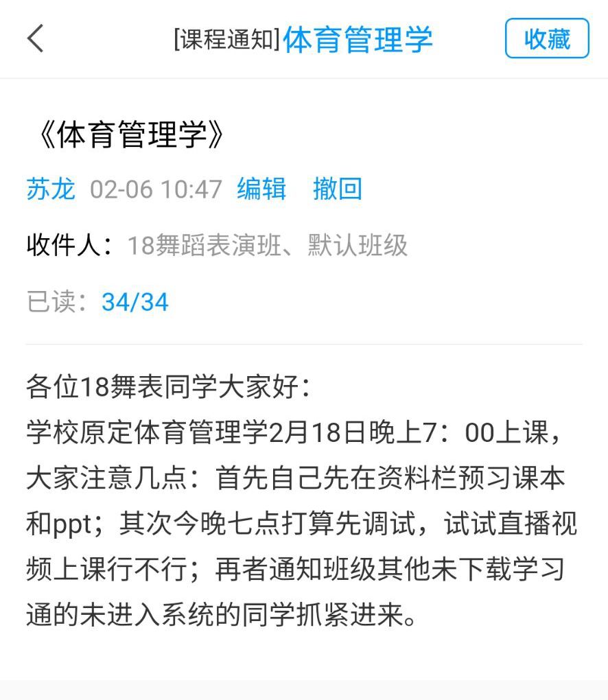 线上直播教学需具备良好的网络条件,当出现上课高峰、网络拥堵时,我会利用腾讯会议平台上课,要求学生打开摄像头,这样充分利用了传统现场教学可以很好地管控学生上课纪律的优势,避免出现直播上课时,老师在上课,学生并不在课堂听课或者干其他与课程无关的事等现象,同时最大程度地还原传统现场教学。提前在“学习通”平台更新任务点,再利用“学习通”以外的平台进行教学并不影响教学效果。多平台线上教学,可以有效地避免了网络拥堵。