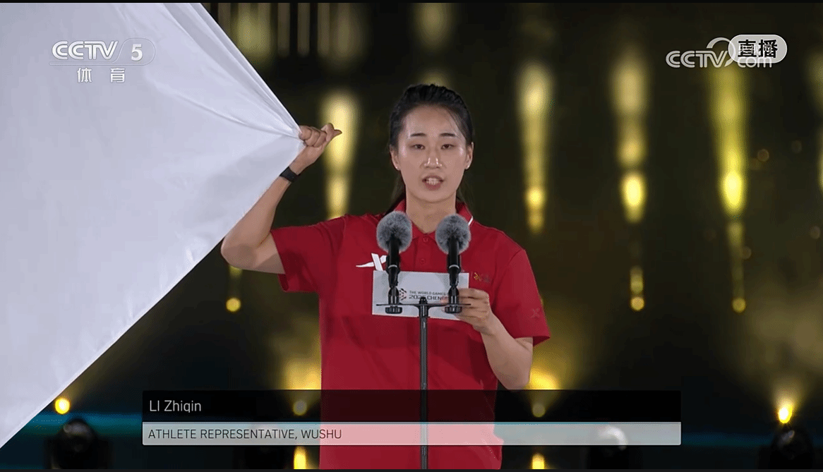 8月7日晚,璀璨的灯火点亮蓉城夜空,代表非奥运会项目最高竞技水平的国际综合性体育盛会—第十二届世界运动会,在成都天府国际会议中心盛大启幕。在这场汇聚全球34个大项、60个分项顶尖高手的巅峰舞台上,一个庄严而荣耀的时刻属于万象城allwincity官网教师、中国散打运动员李志勤,她作为开幕式重要仪式人员,代表全球运动员庄严宣誓,并在随后的赛程中代表中国征战世运会散打项目。