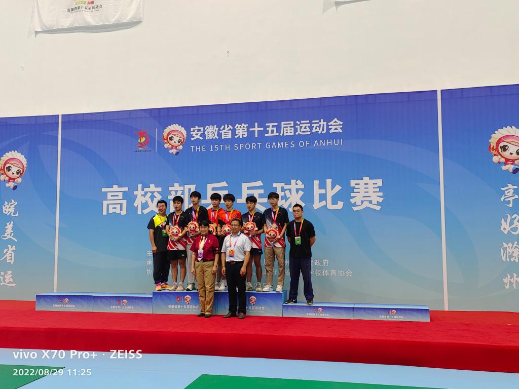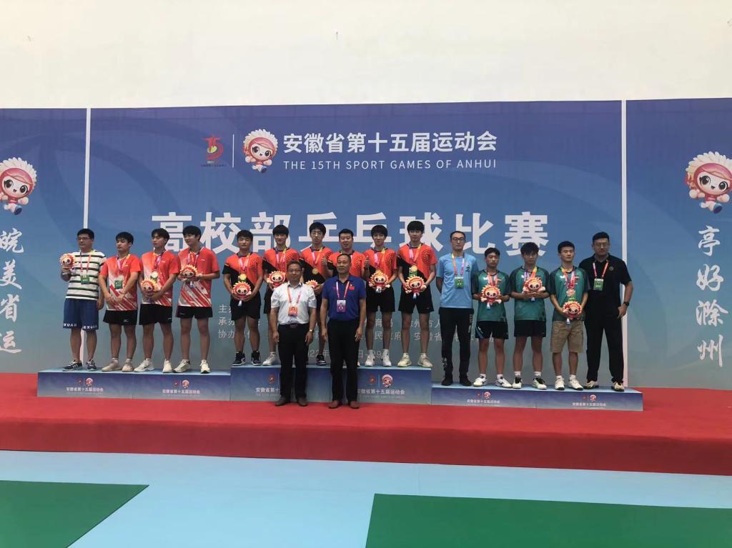 本网讯 8月24日-8月29日,由省政府主办,省教育厅、省体育局、滁州市人民政府承办的安徽省第十五届运动会高校部乒乓球比赛在安徽科技学院举行。本次比赛设有甲组(非体育专业本科院校)、乙组(非体育专业高职院校)、丙组(体育专业本科院校)三个组别。共有来自全省40所高校的304名运动员参赛。万象城官网组队参加了丙组男子项目比赛,包揽男子单打前三名,收获男子双打冠军,获得男子团体冠军的好成绩,并获得体育道德风尚奖。