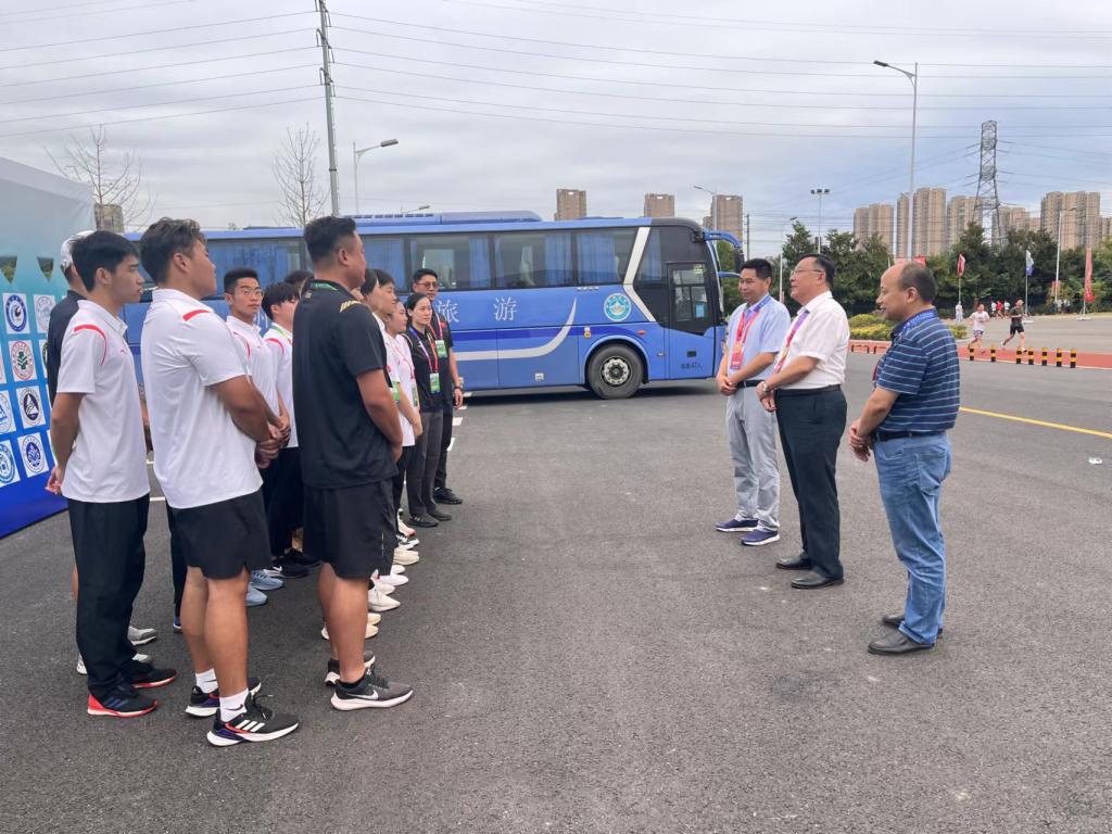 他详细询问了队员们的参赛准备、身体和心理状态以及参赛安排等情况,对所有教练员和运动员提出希望和要求,全体领队和教练员要做好运动员服务保障工作,及时解决运动员参赛中的困难和问题;参赛师生服从赛区管理,严格遵守疫情防控相关规定,展示合师学子的良好形象;希望队员们振奋精神、保持状态、注意安全、劳逸结合,赛出风采、赛出水平,在省运会的青春赛道上奋力奔跑,争取跑出当代合师青年的最好成绩,以精神文明和运动成绩的双丰收向学校第三次党代会献礼。