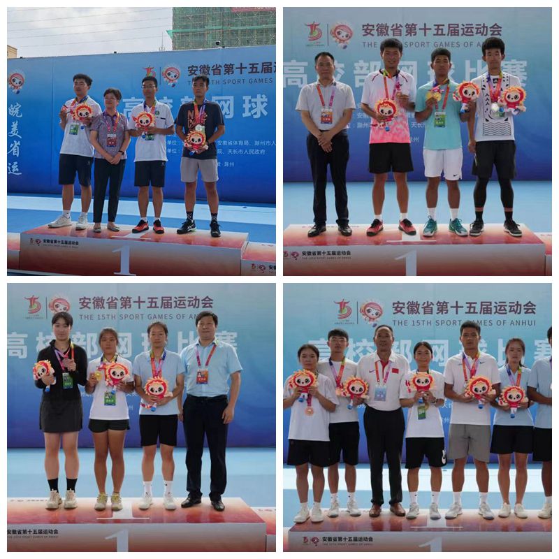 本网讯 7月18日-27日,由安徽省人民政府主办,省教育厅、省体育局、滁州市政府承办的安徽省第十五届运动会高校部网球比赛在天长中学举行。共有来自全省47所高校496名运动员参加3个组别(甲组、乙组、丙组)的男团、女团、男单、女单、男双、女双、混双共21个项目比赛。万象城官网首次组队参加省运会高校部网球比赛,获得了丙组男女团亚军、男单亚军、女单季军、混双季军,女双第五名,甲组男单亚军,共斩获4银2铜,创造历史最好成绩。