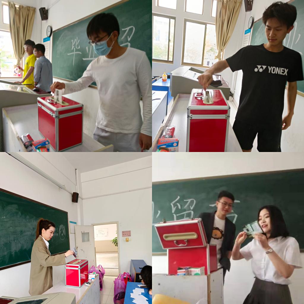 活动中同学们在定制的明信片上写下自己的毕业留言与毕业寄语,签上名字之后投入抽奖箱,辅导员组织大家依次上台抽取一张寄语明信片,每个同学都能随机抽到一张毕业寄语明信片。