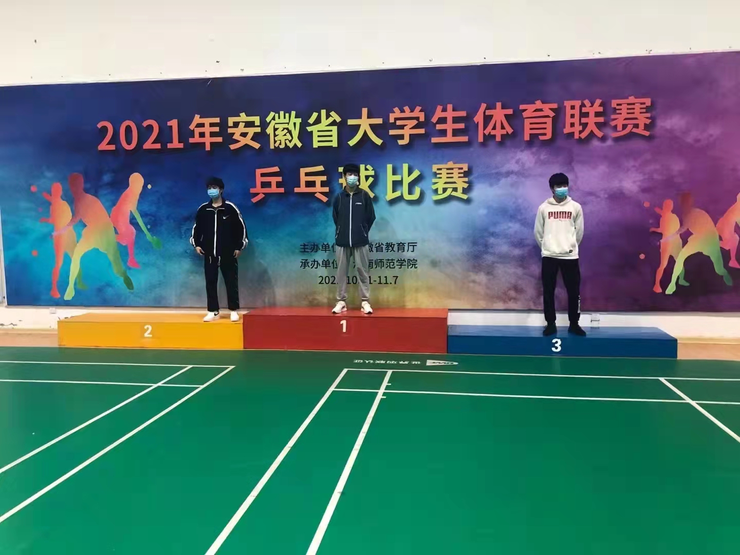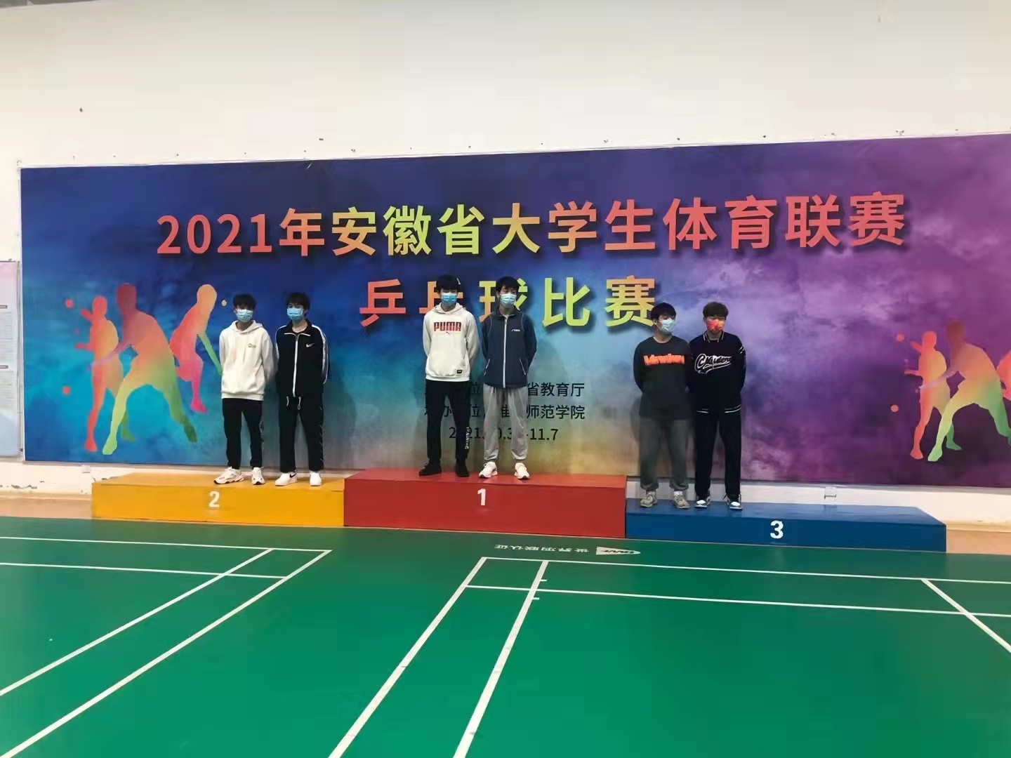 本网讯 10月31日-11月6日,由省教育厅主办、淮南师范学院承办的2021年安徽省学生体育联赛大学生乒乓球比赛在淮南师范学院举行。本次比赛设有甲组(非体育专业本科院校)、乙组(非体育专业高职院校)、丙组(体育专业本科院校)三个组别。万象城官网学子奋力拼搏,在丙组比赛中,包揽男子单打前四名、男子双打冠亚军,获得男子团体冠军的好成绩,创造学校体育事业发展历史。