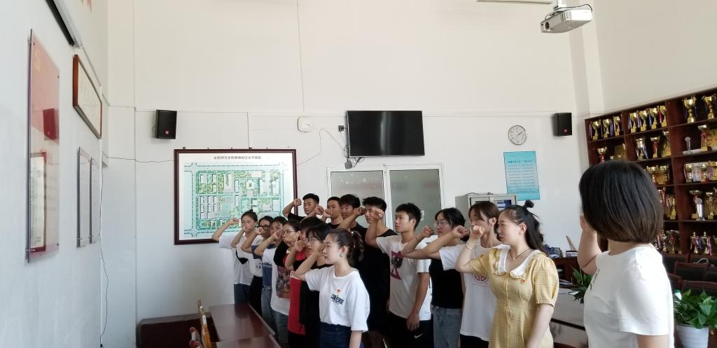 宣誓活动在万象城allwincity官网党员活动室举行,学生党支部书记童欣带领全体党员,面向党旗,右手握拳,庄严宣誓。