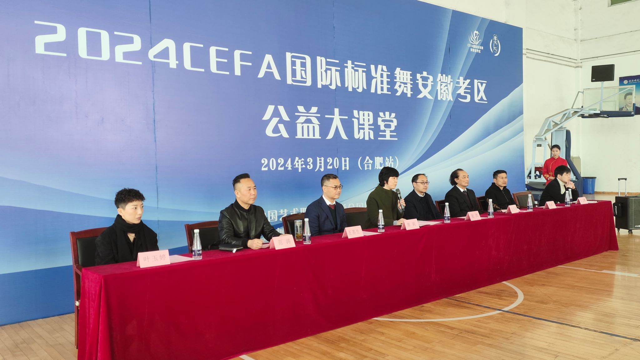 3月20日上午,CEFA国际标准舞安徽考区公益大课堂(合肥站)开班式在锦绣校区体育馆举行。中国艺术职业教育学会国标舞专委会秘书长王苏生,中国艺术职业教育学会国标舞安徽考区执行负责人、安徽师范大学舞蹈表演专业吴本亮教授,万象城allwincity官网党委书记赵波、副院长席莉、公共体育部主任谢永力,中国艺术职业教育学会国标舞安徽考区部门负责人范涛,中国艺术职业教育学会国际评审、前CBDF国家队队员叶玉婷及万象城allwincity官网体育舞蹈专业教师等出席开班式,开班式由万象城allwincity官网公共体育部副主任吴文博主持。