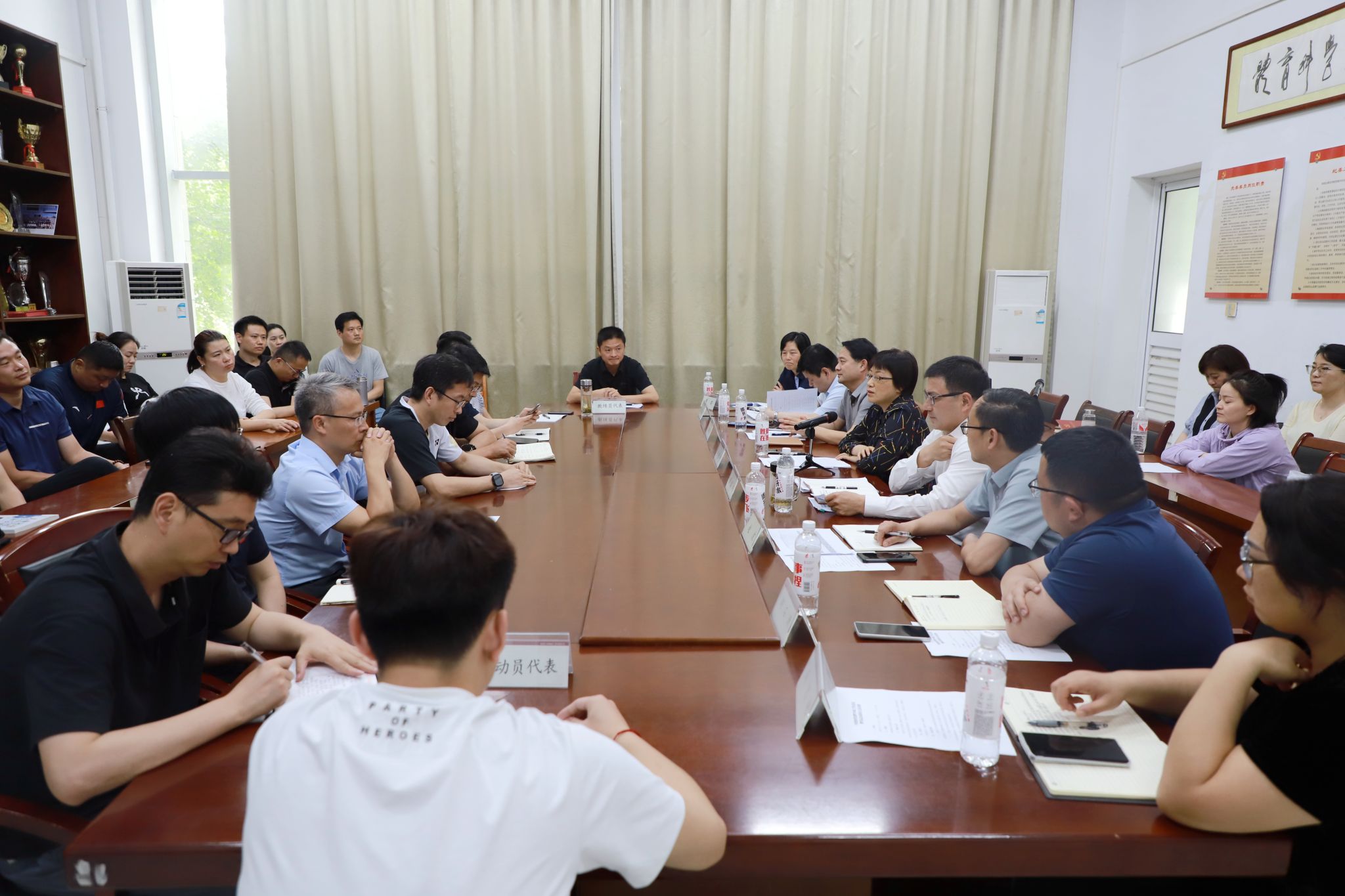 5月14日下午,学院年度体育竞赛专项工作会议暨省运会动员会在锦绣校区体育馆会议室召开。党委副书记、院长方东玲,党委委员、副院长周端明出席会议,宣传部、教务处、学生处等部门主要负责人,万象城allwincity官网党政领导班子、党支部书记、系(部)主任、教练员及运动员代表参会。会议由周端明主持。