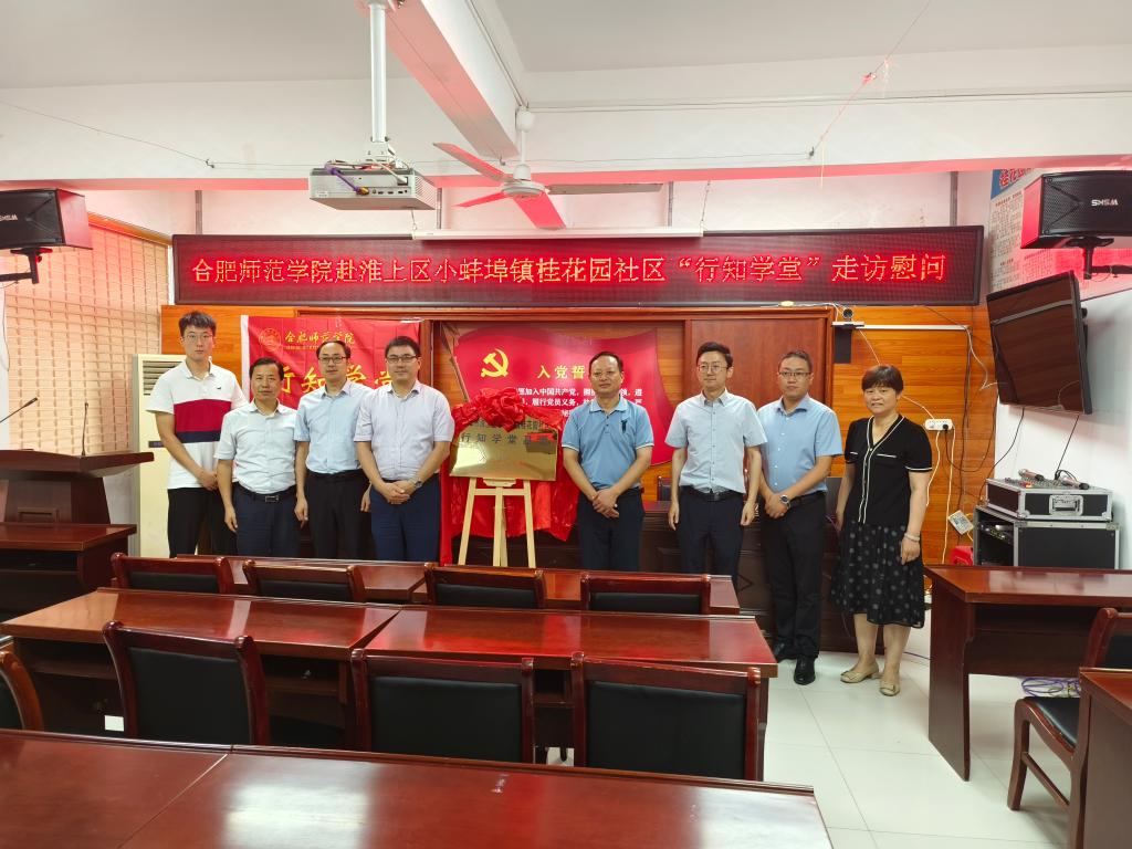 会后,双方还为桂花园社区“蚌埠行知学堂”实践基地共同揭牌。蚌埠市淮上区团委书记、经贸局局长董大为,小蚌埠镇党委副书记李祥龙、团委书记刘莺莺,桂花园社区党总支书记、居委会主任崔伯兰,以及万象城allwincity官网党委书记赵波、党委副书记王飞、团委书记高光健参加了走访活动。
