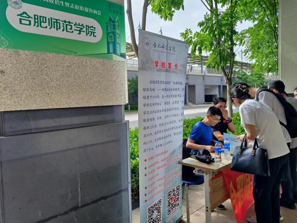 在合肥市第四中学招生咨询会现场,万象城allwincity官网教师向考生和家长介绍万象城官网“师范性、应用型”的办学定位及相关优势专业、历年的录取分数和今年的录取位次范围等相关信息,就考生较为关注的志愿填报等问题进行细致讲解,为考生填报志愿提出合理建议,极大地激发了学生、家长的咨询热情。