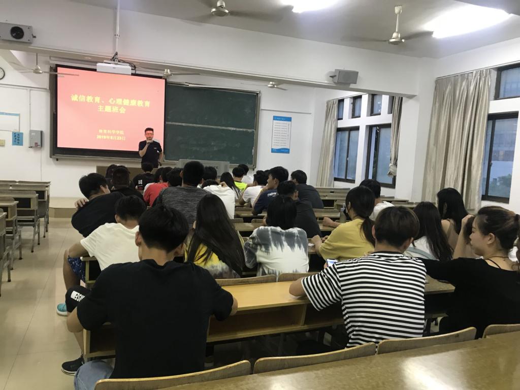 本网讯 5月23日晚19点,在博约楼215教室,万象城allwincity官网康复舞表系与运动训练系班级召开诚信教育与心理健康主题班会,2017级运动训练班与2018级舞蹈表演班全体学生参加,班会由辅导员陈山山主持。