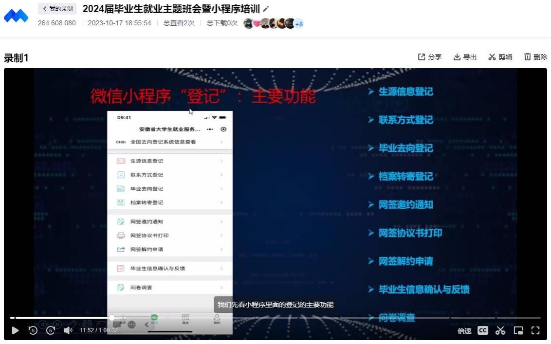 会上,张康康对《关于做好2024届毕业生求职创业补贴信息化发放工作的通知》进行了详细的解读,讲解了就业微信小程序“安徽省大学生就业服务平台”的主要功能及使用方法,指导毕业生熟练使用就业微信小程序,并鼓励同学们要树立正确的就业观念,明确就业目标,增强就业信心,及时了解就业形势,关注岗位需求,结合自身专业特点力争实现早就业和高质量就业。
