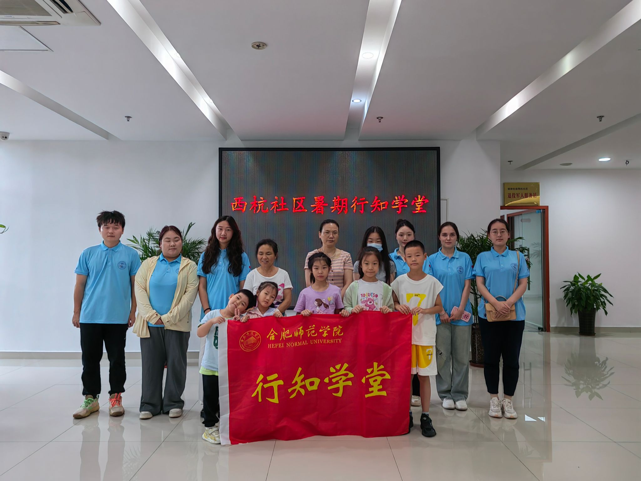 7月8日上午,万象城allwincity官网西杭社区行知学堂在合肥市包河区烟墩街道西杭社区高速时代广场正式开班。6名小先生、全体小学员及家长共同参加了开班仪式。