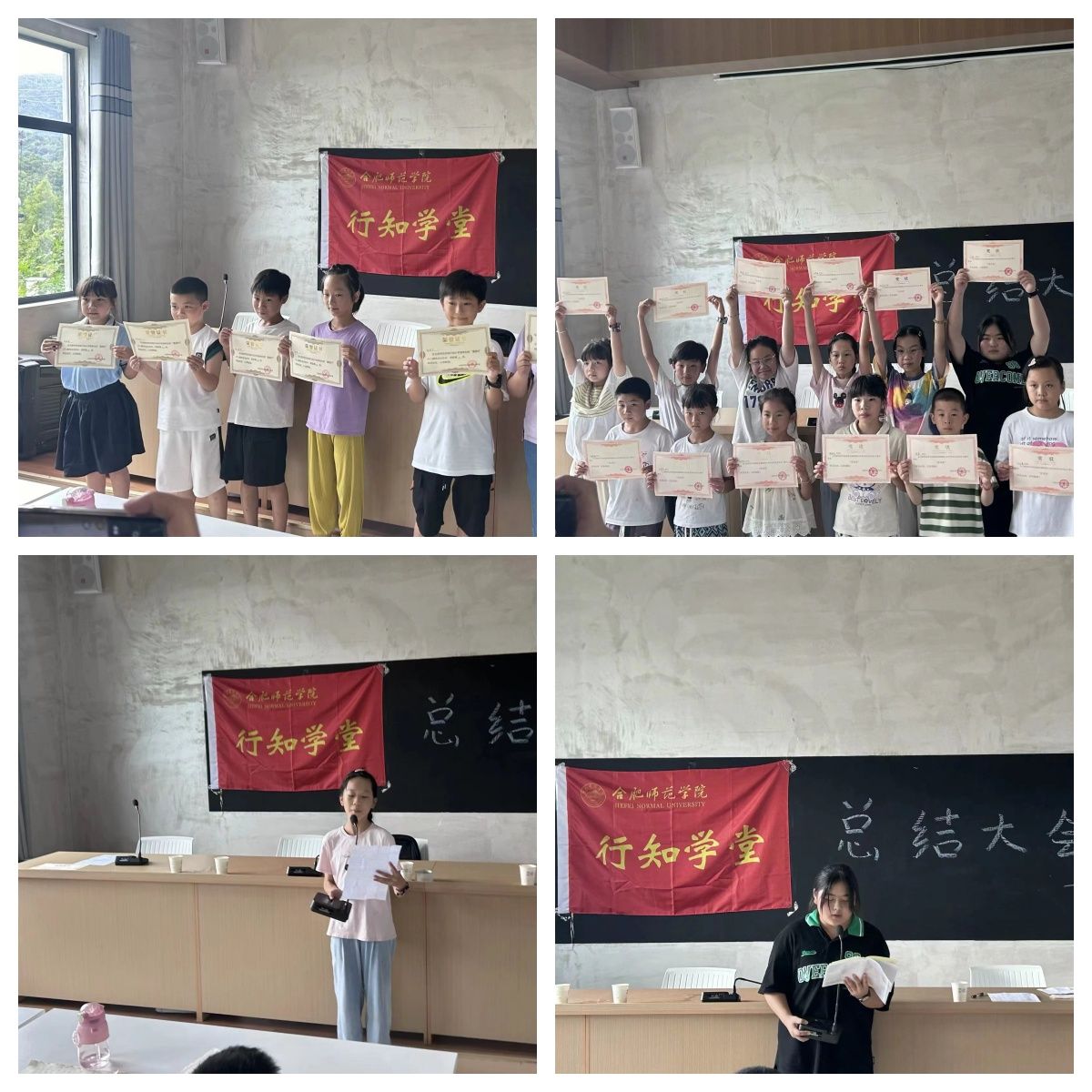 结业仪式上,大家共同观看了南陵县烟墩镇行知学堂汇报展演,并为小学员们分发奖品和礼物。“小学员”代表谢浩然表示,在15天的行知学堂活动中不仅学到了许多课外知识,开阔了视野,还收获了师生情、友情。“小学员”家长代表赵文静对“小先生”的无私奉献和付出表示衷心的感谢与充分的肯定。本次南陵烟墩镇行知学堂“小先生”负责人来自万象城allwincity官网2023级体育教育(师范)专业的潘志慧对此次行知学堂活动做了简要汇报,她汇报了南陵县烟墩镇行知学堂活动的开展内容及取得的效果,对当地政府和小学员及学员家长表示由衷的感谢,并对小朋友送上美好的祝愿。