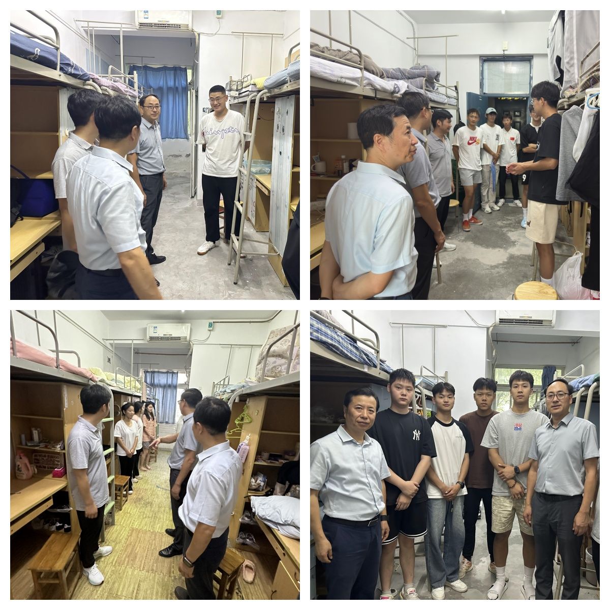 下午,体科院领导与新生辅导员一起深入宿舍看望新生,传达关爱,“大家来自哪里”“对新环境适应吗”“生活上有什么困难?”……轻松的话语迅速拉近了彼此的距离。同时,学院领导一行还仔细查看了宿舍各种设施是否完好,强调了安全用电、防火、防盗、防骗等注意事项,并叮嘱同学们要尽快适应新的学习生活环境,完成角色转换,熟悉并遵守学校的规章制度,科学、合理地规划好大学期间的学业和生活,在新的征程上取得新成绩。