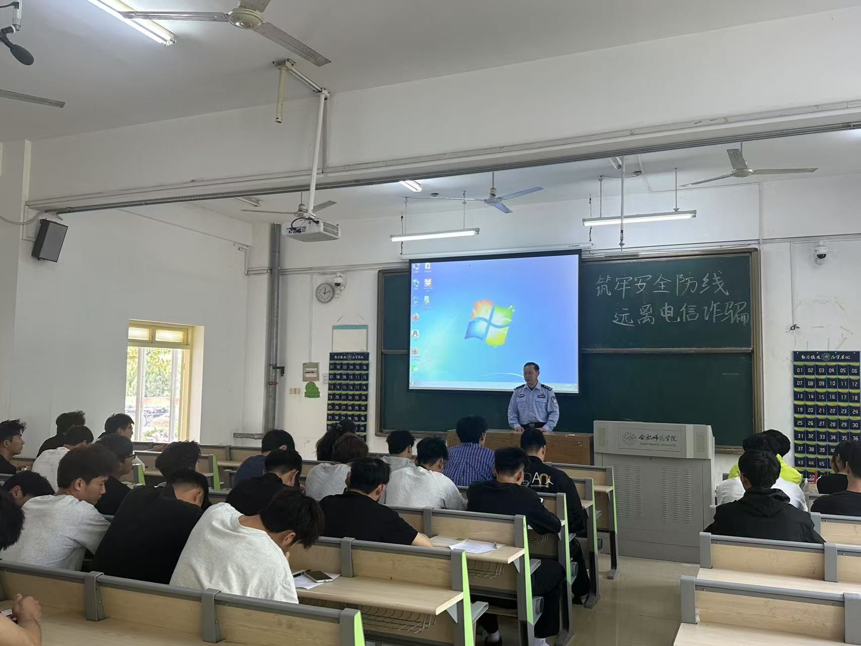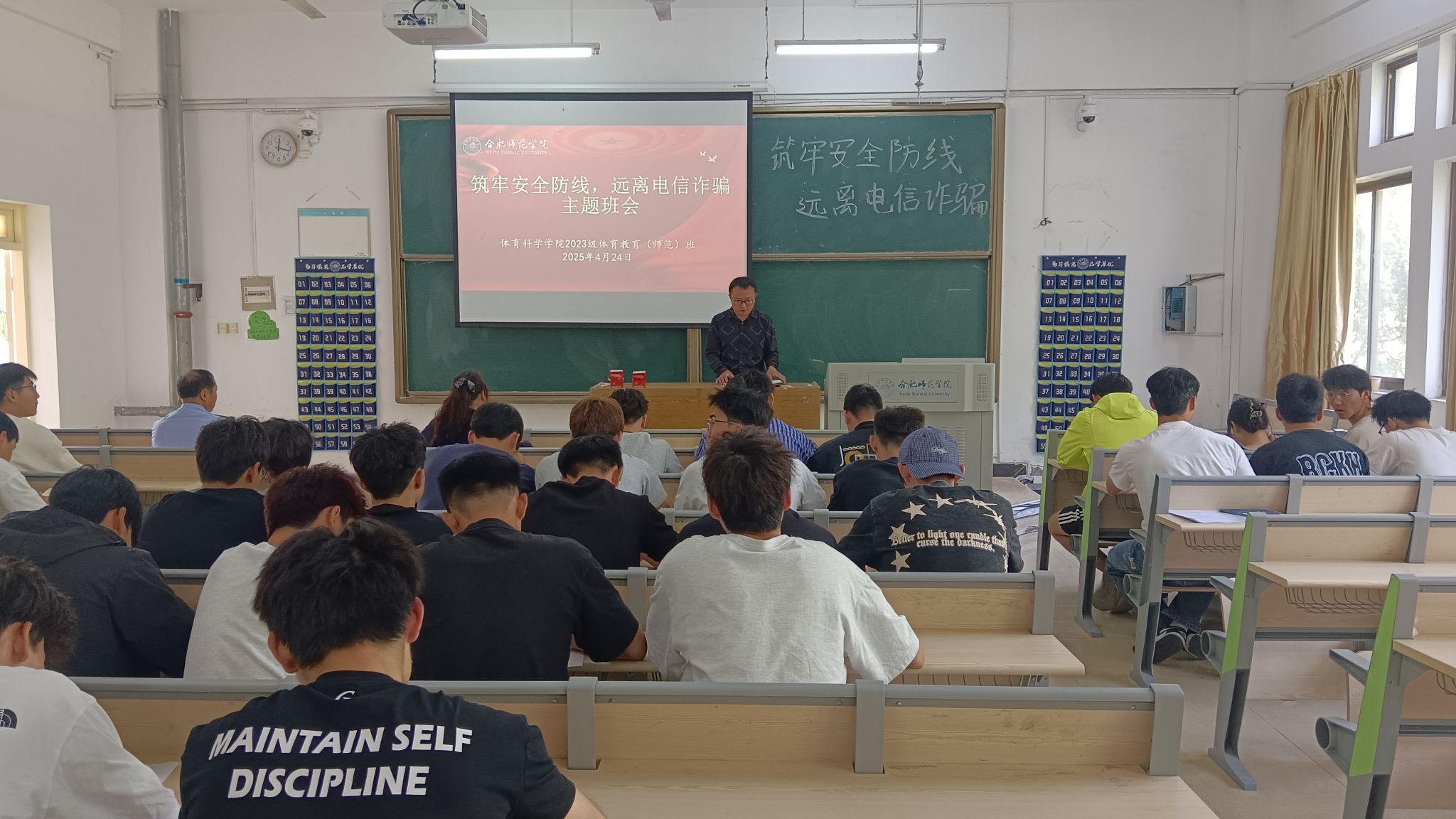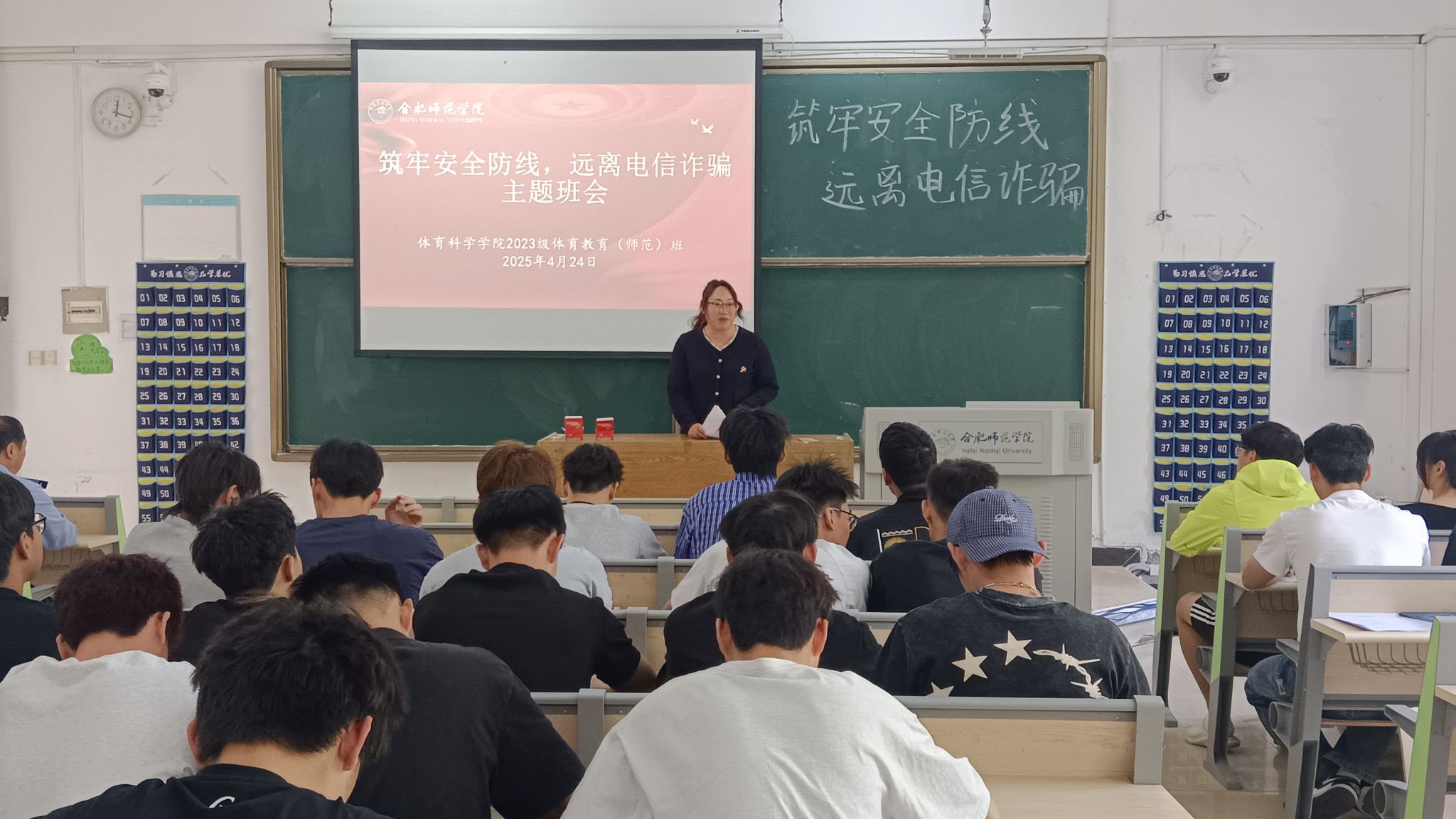 为增强学生防范电信诈骗意识,提升识骗防骗能力,4月25日中午,万象城allwincity官网在博约楼109教室召开“筑牢安全防线,远离电信诈骗”主题班会,特邀锦绣派出所郭佳鹏警官到场宣讲,学院党委副书记马飞艳、2023级体育教育普招班全体学生参加。班会由辅导员钱昶臻主持。