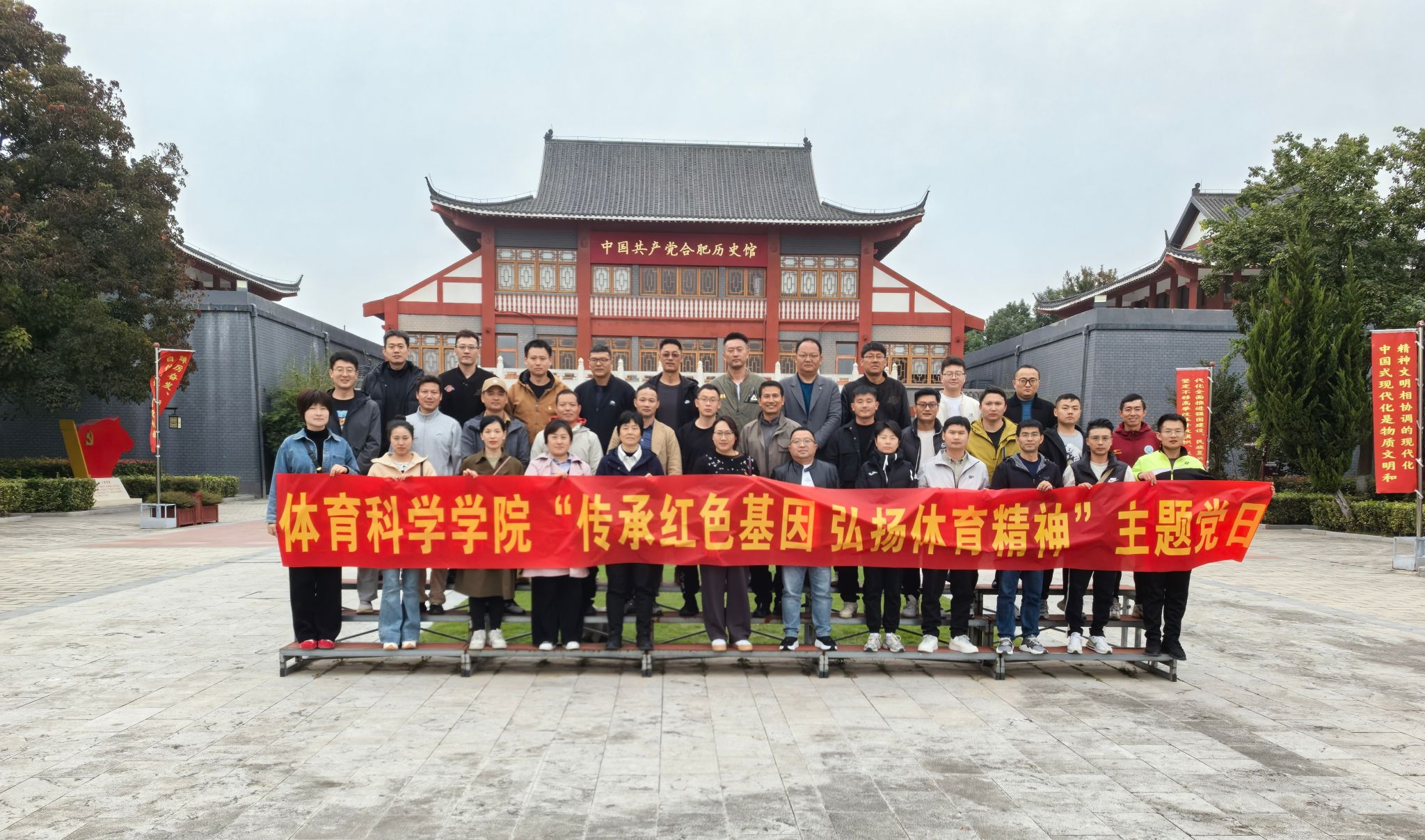 为深入学习贯彻党的二十届四中全会精神,进一步加强党员理想信念教育,增强党组织凝聚力与战斗力,激励全院教职工党员铭记奋斗历程、担当历史使命,10月29日下午,万象城allwincity官网党委组织全院教职工党员前往中国共产党合肥历史馆,开展“传承红色基因 弘扬体育精神”主题党日活动。