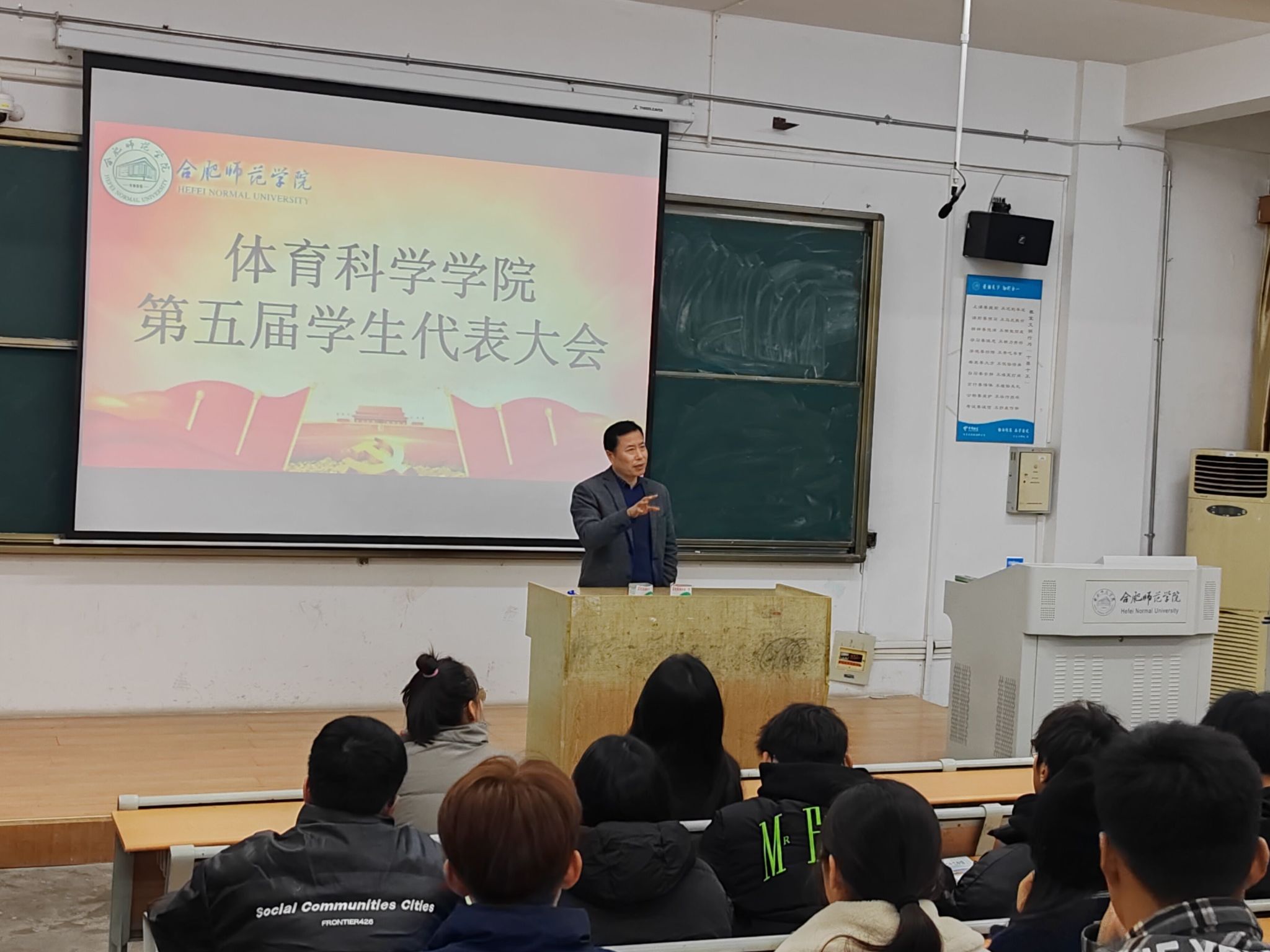 为完善学生干部的队伍建设,选拔出一批思想素质过硬,工作作风扎实,实践能力突出的学生干部队伍,11月14日晚上,万象城allwincity官网在锦绣校区博约楼112教室胜利召开第三次学生代表大会,体科院党委副书记王飞、学院分团委书记高光健,45名学生代表出席本次会议。