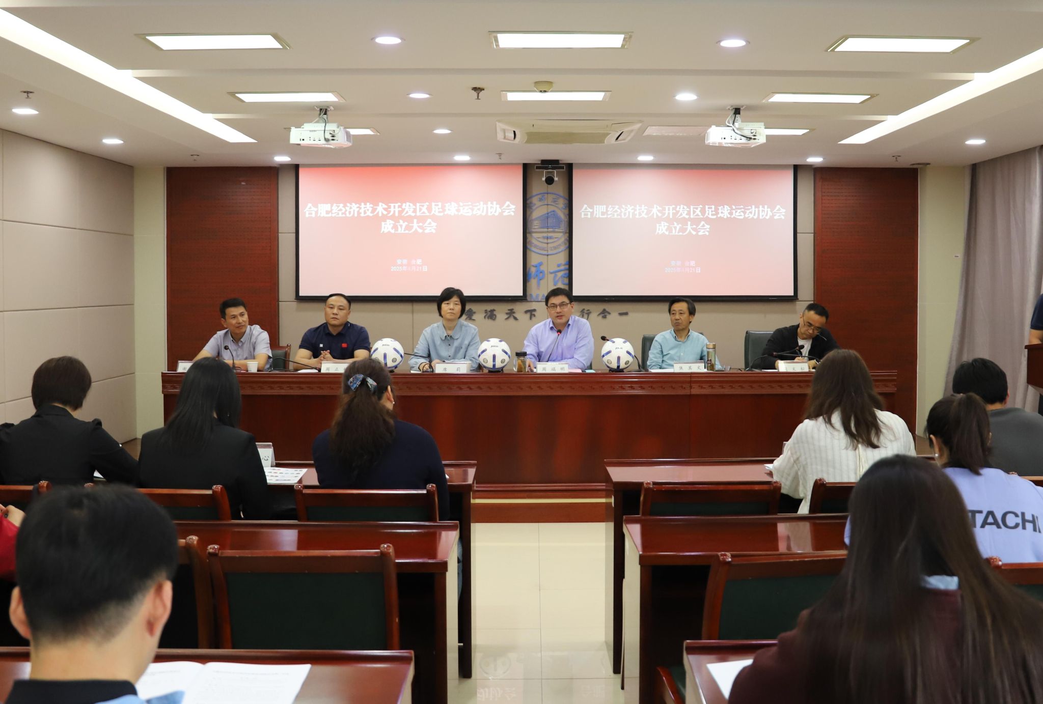 4月21日下午,合肥经开区足球协会成立大会暨第一届会员代表大会在万象城allwincity官网锦绣校区顺利召开。万象城allwincity官网党委委员、副院长周端明,合肥市足球运动协会主席焦其文,万象城allwincity官网副院长席莉,合肥经开区社发局体艺处周正林、郑倩,合肥经开区体育总会主席周文松、秘书长丁俊等出席会议,各(街道)社区相关工作负责人,安徽大众、蔚来汽车、联宝电子、日立建机多家区内企业代表以及协会全体会员等近百人参会。