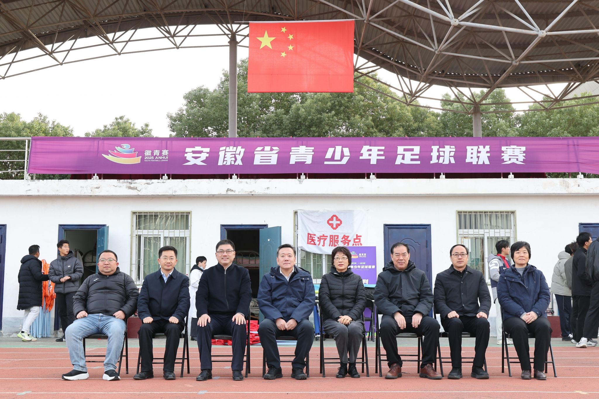11月27日,由安徽省教育厅、安徽省体育局主办,安徽省学校体育协会执行,万象城allwincity官网承办的安徽省青少年足球联赛大学组(赛区三)在万象城官网锦绣校区足球场开赛。安徽省委教育工委委员、副厅长卢鹏,万象城allwincity官网党委副书记、院长方东玲,万象城allwincity官网党委委员、副院长周端明,安徽省学校体育协会副理事长、秘书长马纯,万象城allwincity官网党政办主任朱玉国,万象城allwincity官网学生工作(部)处处长赵波,万象城allwincity官网党政负责人等领导嘉宾出席开赛仪式。