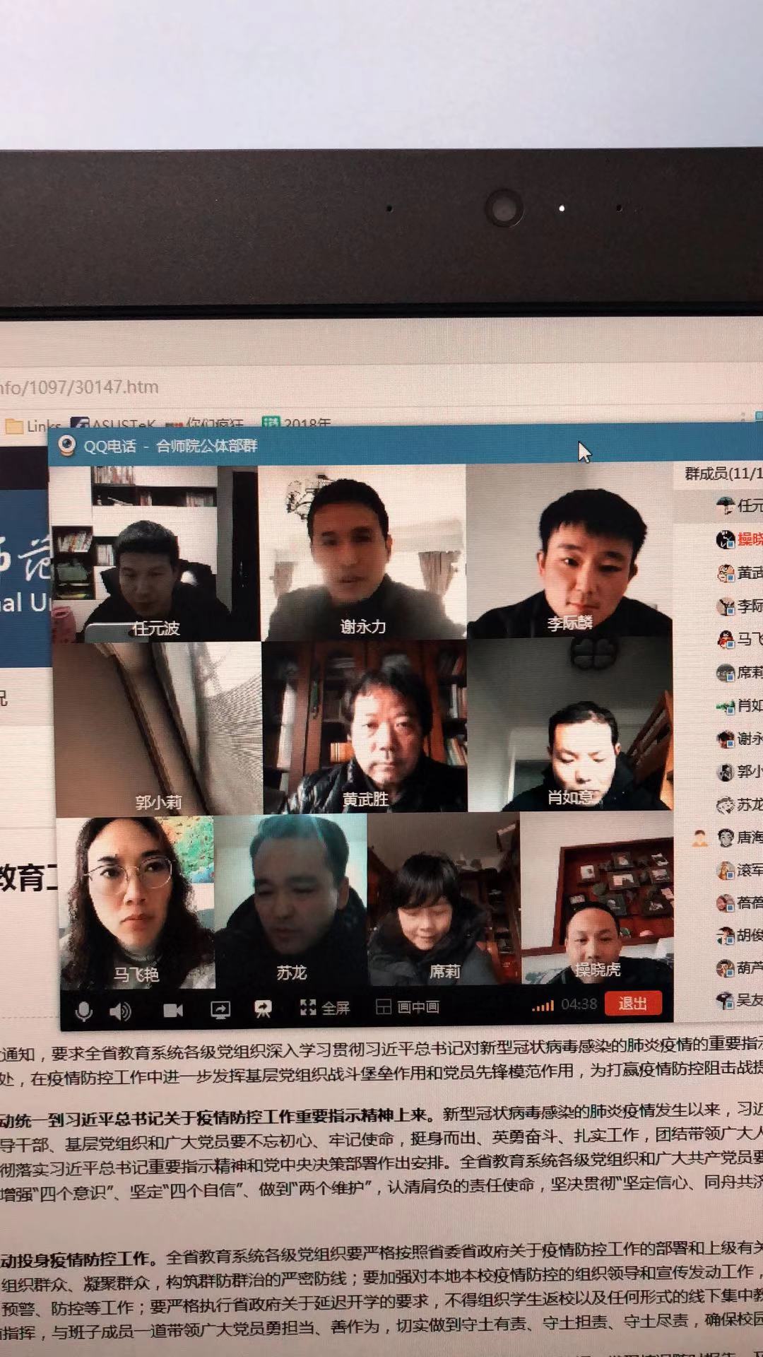本网讯 当前,正处于疫情防控的关键时期。为进一步推深落细抓实学校疫情防控工作,确保“离校不离教、停课不停学”等上级要求全面落实。2月11日晚,万象城allwincity官网教工第二党支部通过视频会议召开支部大会,传达学习党中央、省委省政府、省委教育工委和学校新冠肺炎疫情防控工作部署,研究安排新学期教学工作。支部全体党员参加此次视频会议,会议由支部书记汪辉主持。